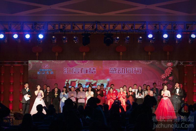 本次晚会呈现了一场传统中国红与汇信文化的美妙合奏,晚会共有来自各分(子)公司和职能部门的14个节目参赛,他们以饱满的热情和精心的准备带给了我们一场视听盛宴。伴随着诗朗诵《感恩汇信、追梦未来》的朗朗书声,元宵晚会正式拉开了序幕。“恭喜你发财”热闹红火的《快乐工作》舞蹈串烧瞬间将舞台点燃,随着食堂师傅诙谐幽默的表演整场晚会达到高潮;萨克斯独奏《月亮代表我的心》,悠长、浪漫的音乐让人久久回味;时而温婉如水,时而劲爆如火,《炫舞青春》就这样带给我们一场“一半火焰一半海水”的精彩秀;《大自然在说话》以大地、水、花、空气的诉说方式告诉人们我们需要思考,因为我们需要大自然;炫彩的爆炸头,富有节奏的动感音乐下第一分公司用《新编工间操》诠释了汇信人多彩的个性张扬;《七星送福 琴·笛·书 共筑梦》让我们看到江南风情下的独特韵味,更见证了第七分公司的才子佳人;四大男声用浑厚且富有磁性的嗓音唱着曾经的梦想,更唱出了每一个人心中的真心英雄。晚会的最后公司高层更是送上了精彩的配音秀和男声独唱,再一次把晚会推向高潮。