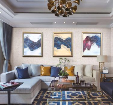 刺绣墙布就像女人穿的旗袍,大方端庄美丽!墙布等软装饰品的衬托,使得房子的混凝土属性大大降低,从而不再压抑,能很好的舒缓情绪。
