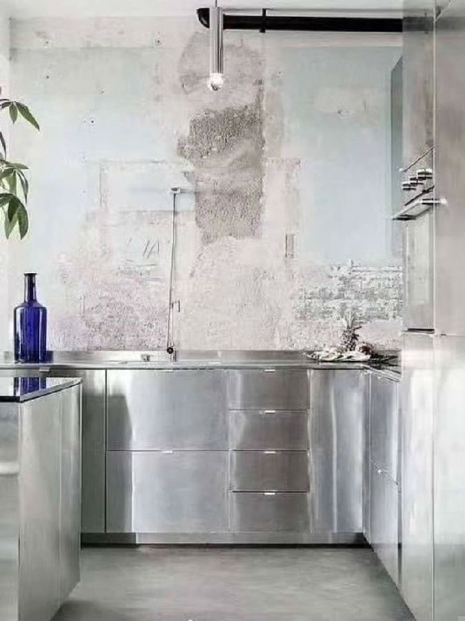 小陈告诉我他们家的是悍德的不锈钢材质橱柜,这家橱柜还是很有追求的,材质选用进口的304不锈钢钢板,防水防火,还不易变形,她家买了两年仍然崭新如初,听说还能质保30年柜体品质呢!她边说着边拿出手机来给我看照片,不锈钢拼接柜角,圆滑细腻,百虫不侵。
